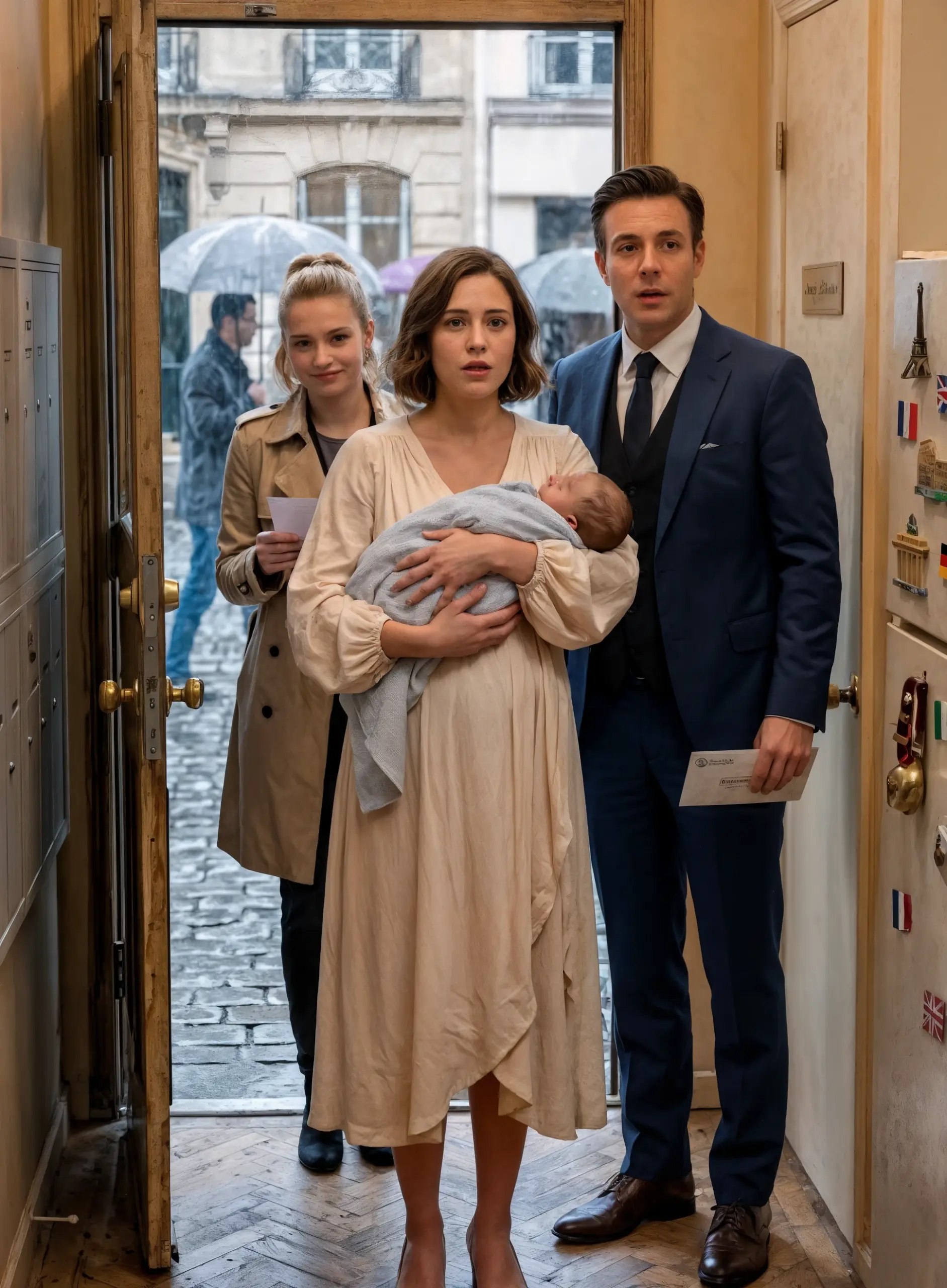 Sei mesi dopo il nostro divorzio, il mio ex marito si presentò alla mia porta con la sua fidanzata e il loro invito di nozze. Ma nel momento in cui vide il neonato tra le mie braccia, impallidì e la superò di corsa nel panico…