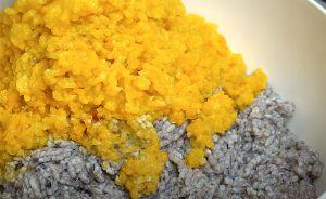 Пока помидоры тушатся, прокрутим через мясорубку грибы и уже готовую морковь с луком.