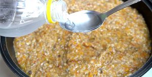 Добавляем все ингредиенты в кастрюлю, солим, перчим и тушим 1 час. Через час настало время чеснока и уксуса: вводим, размешиваем и тушим еще 15 минут.