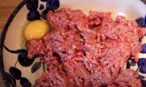 Теперь смешиваем фарш с яйцом, солью и панировочными сухарями. Эти добавки сделают фарш более плотным, что потребуется нам на следующем этапе.