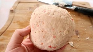 Смешайте помидоры с дрожжами с мукой, замесите мягкое тесто. Оставьте под полотенцем на 15 минут.