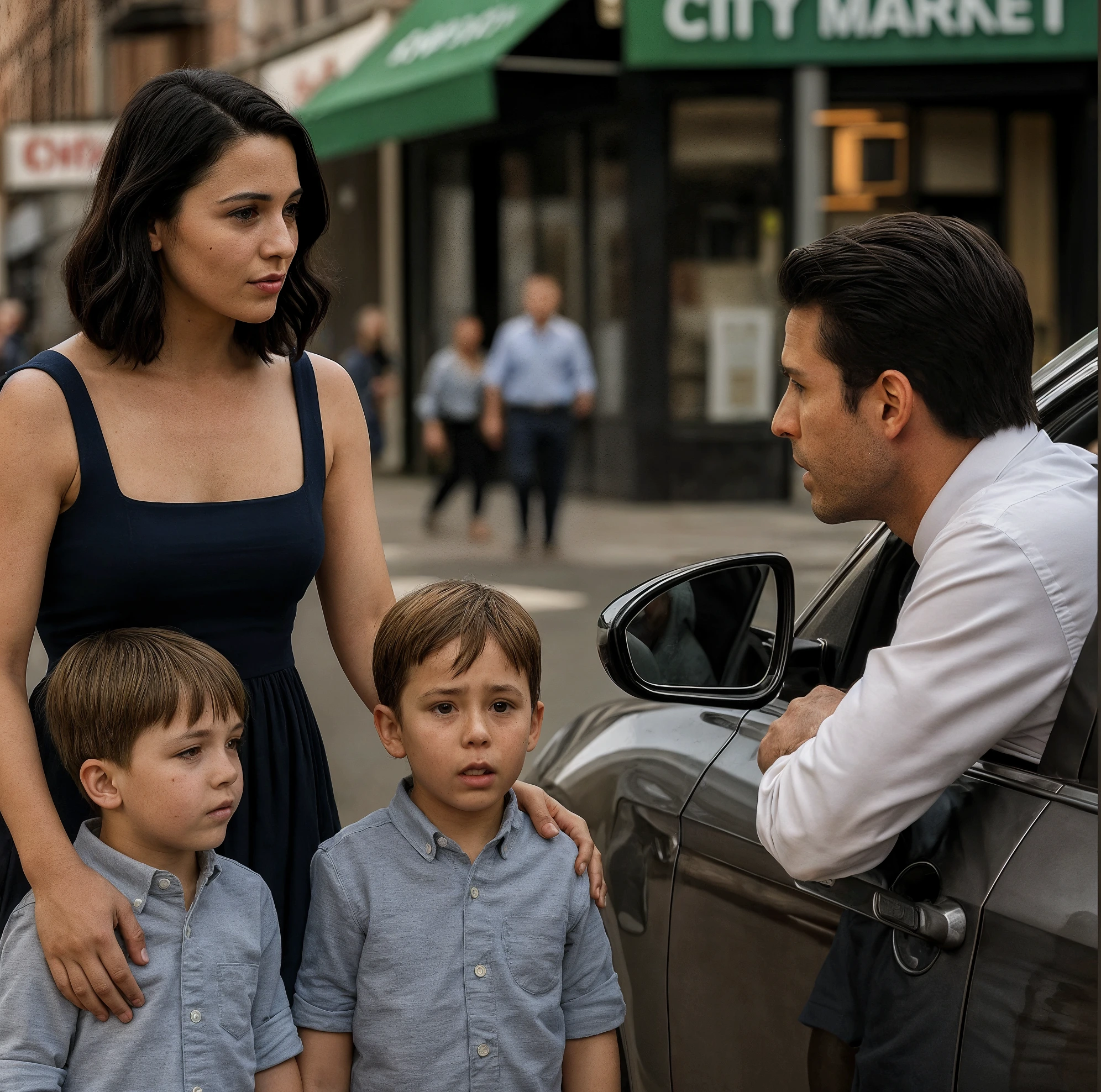 I bambini lo guardarono incuriositi. Il più grande inclinò la testa. «Chi è quello, mamma?»