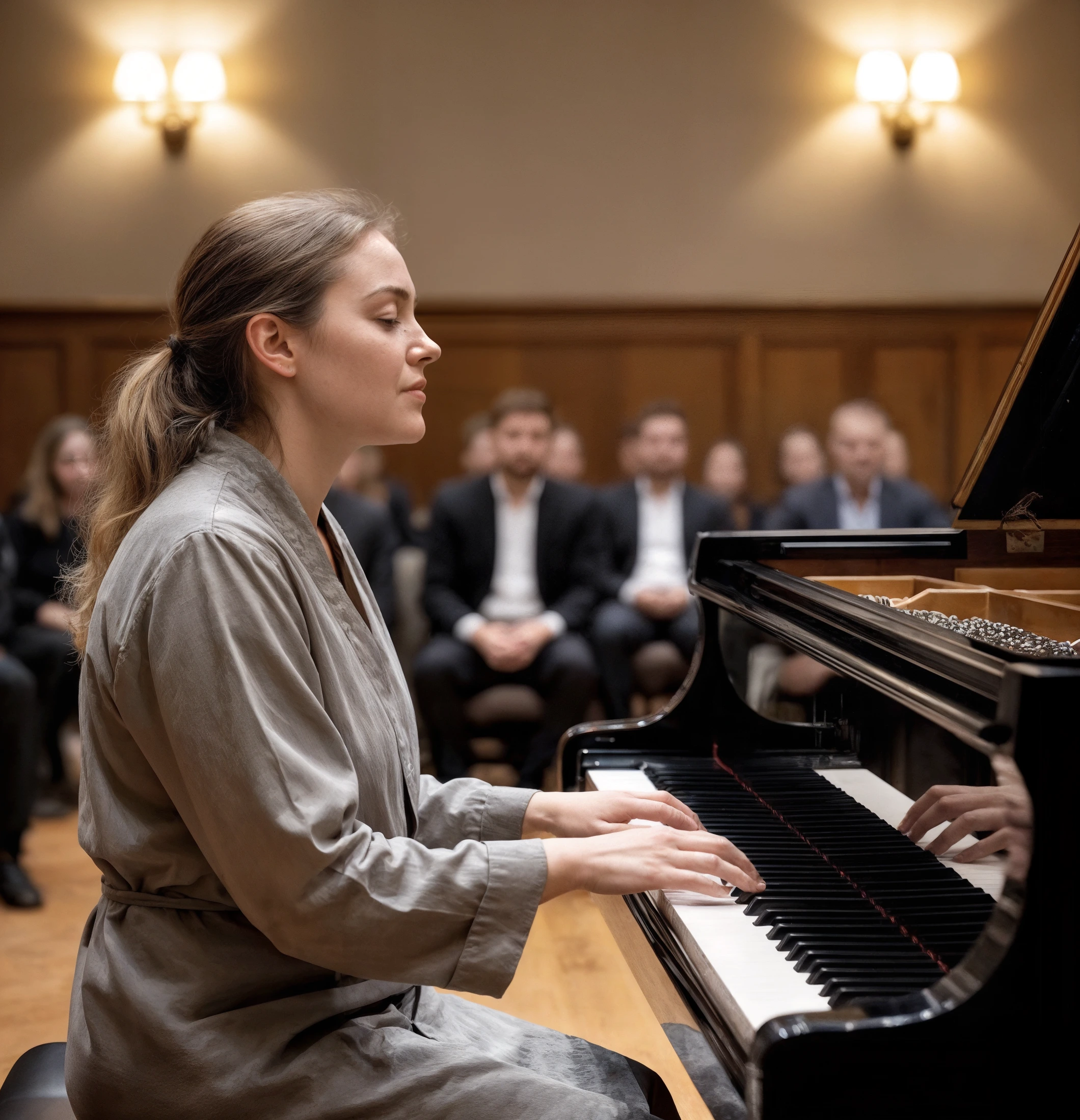 Chiesi di spegnere la luce in sala mentre mi sedevo allo strumento. Mi vergognavo del mio passo irregolare, dei miei vestiti da lavoro. Ma quando la luce si riaccese e le mie dita toccarono i tasti freddi, qualcosa scattò dentro.