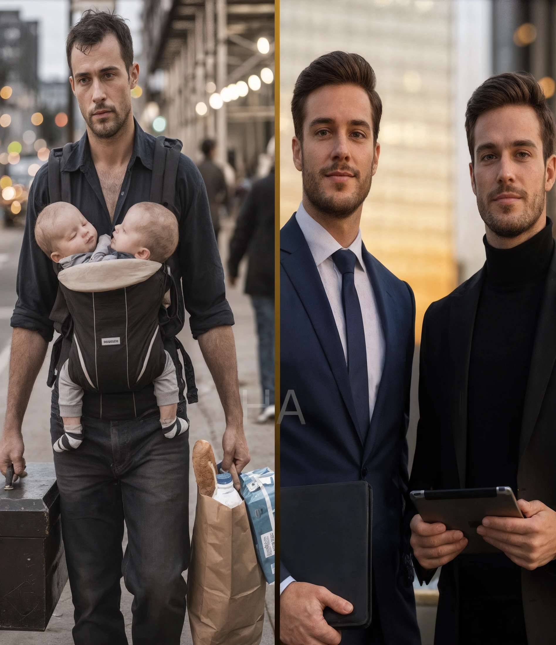 I vicini lo vedevano spesso — tornare a casa con le borse della spesa che gli pendevano da un braccio, i gemelli stretti al petto, il volto inciso dalla fatica ma gli occhi ardenti di una silenziosa determinazione. Molti scuotevano la testa con pietà. Pochi credevano che ce l’avrebbe fatta.