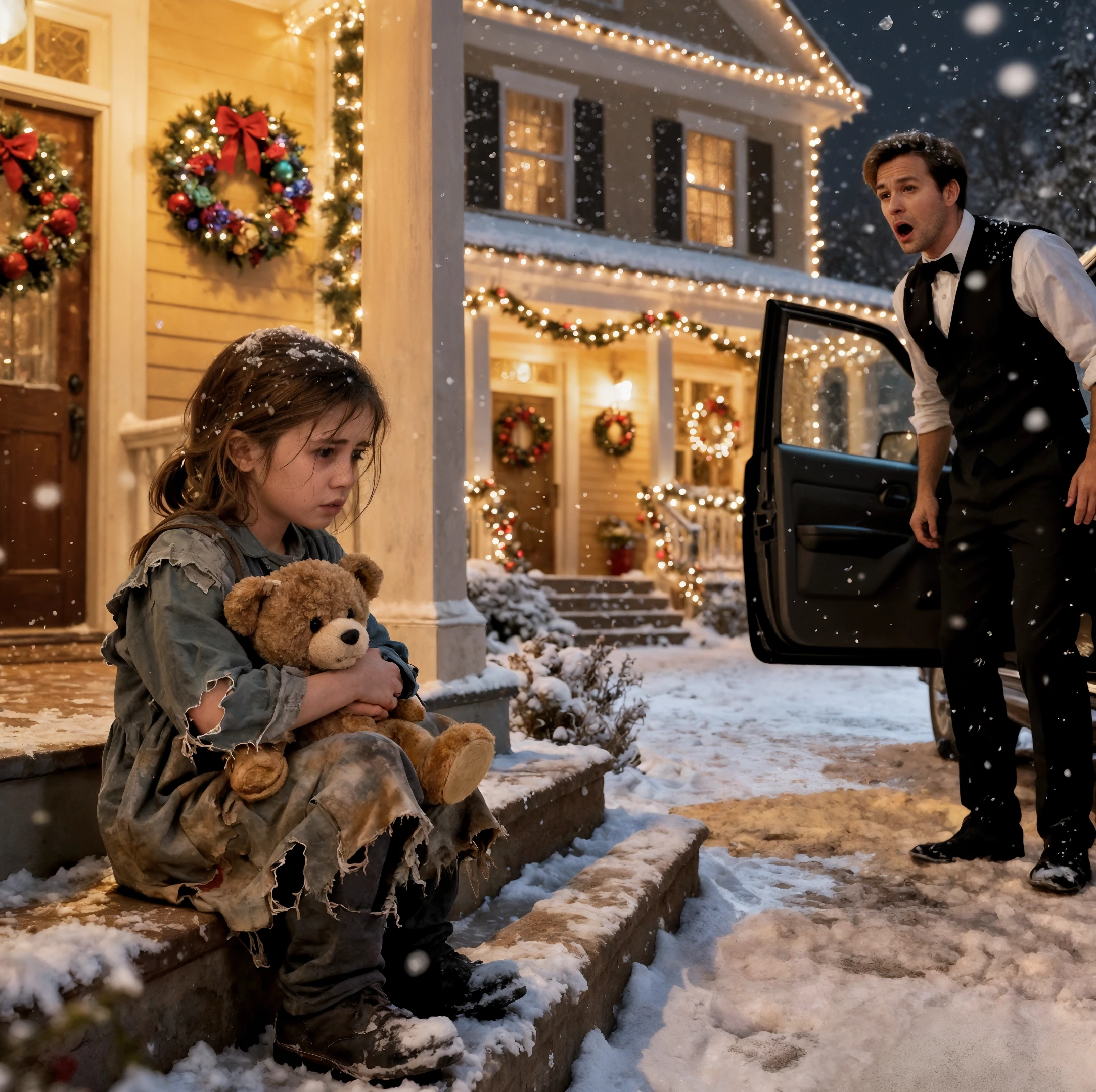 Alla vigilia di Natale a Chicago, la neve cadeva fitta e silenziosa sui marciapiedi. Le famiglie si affrettavano a tornare a casa con regali e risate calde. Ma all’angolo di una lunga e tranquilla strada piena di case lussuose, si svolgeva una scena molto diversa. Edward Miller, 45 anni, un rispettato investitore immobiliare noto per le sue decisioni azzeccate e la sua impeccabile compostezza, scese dalla sua Cadillac nera dopo una lunga riunione d’affari. Le luci della sua villa brillavano calde contro la notte gelida; eppure, sentiva uno strano vuoto nel cuore. Stava per entrare quando qualcosa attirò la sua attenzione.