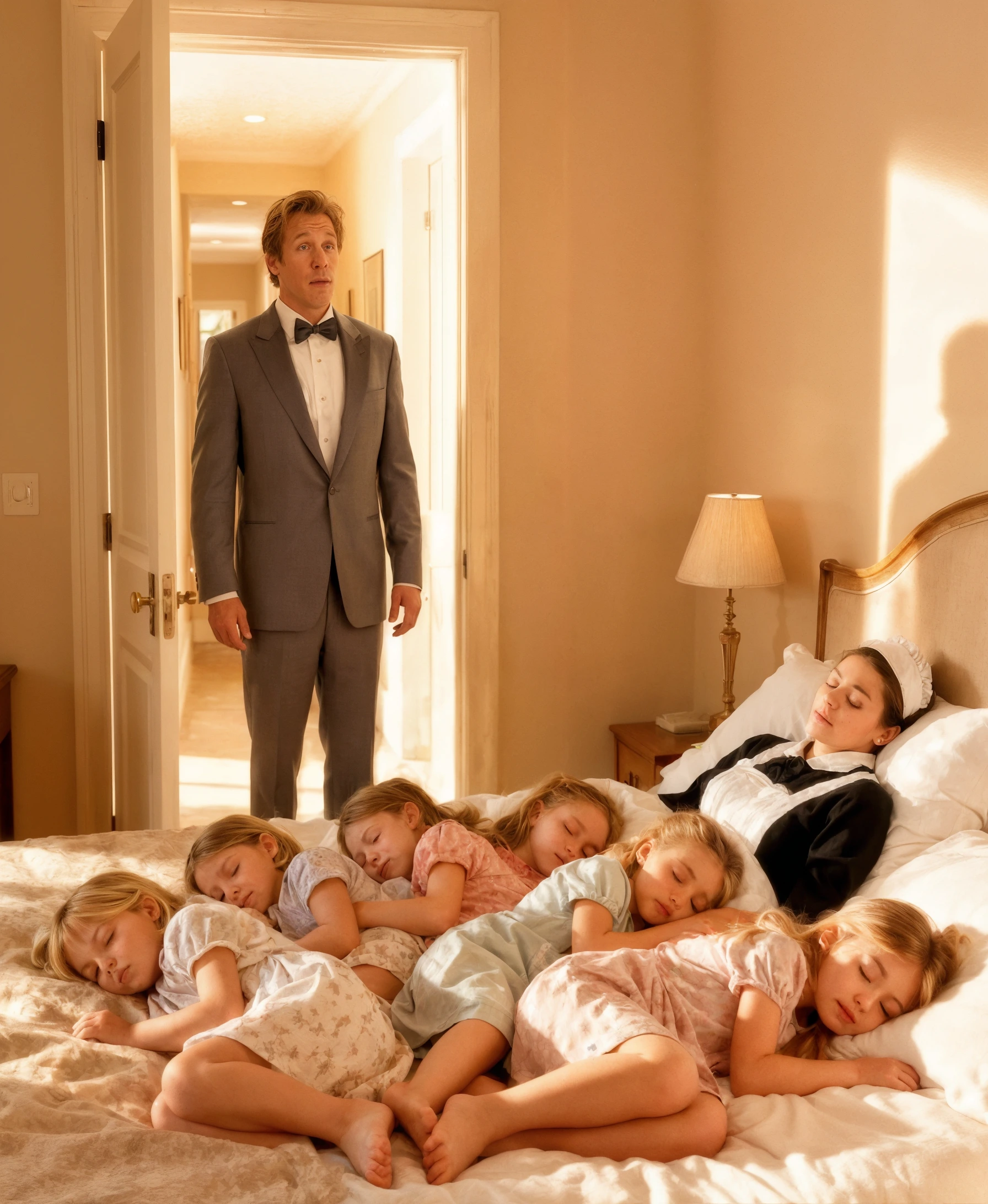 Sei bambine la osservavano dalle scale. Hazel, dodici anni, postura rigida. Brooke, dieci, che si tirava le maniche. Ivy, nove, gli occhi che scattavano da una parte all’altra. June, otto, pallida e silenziosa. Le gemelle Cora e Mae, sei, con un sorriso fin troppo intenzionale. E Lena, tre, che stringeva un coniglio di peluche strappato.
