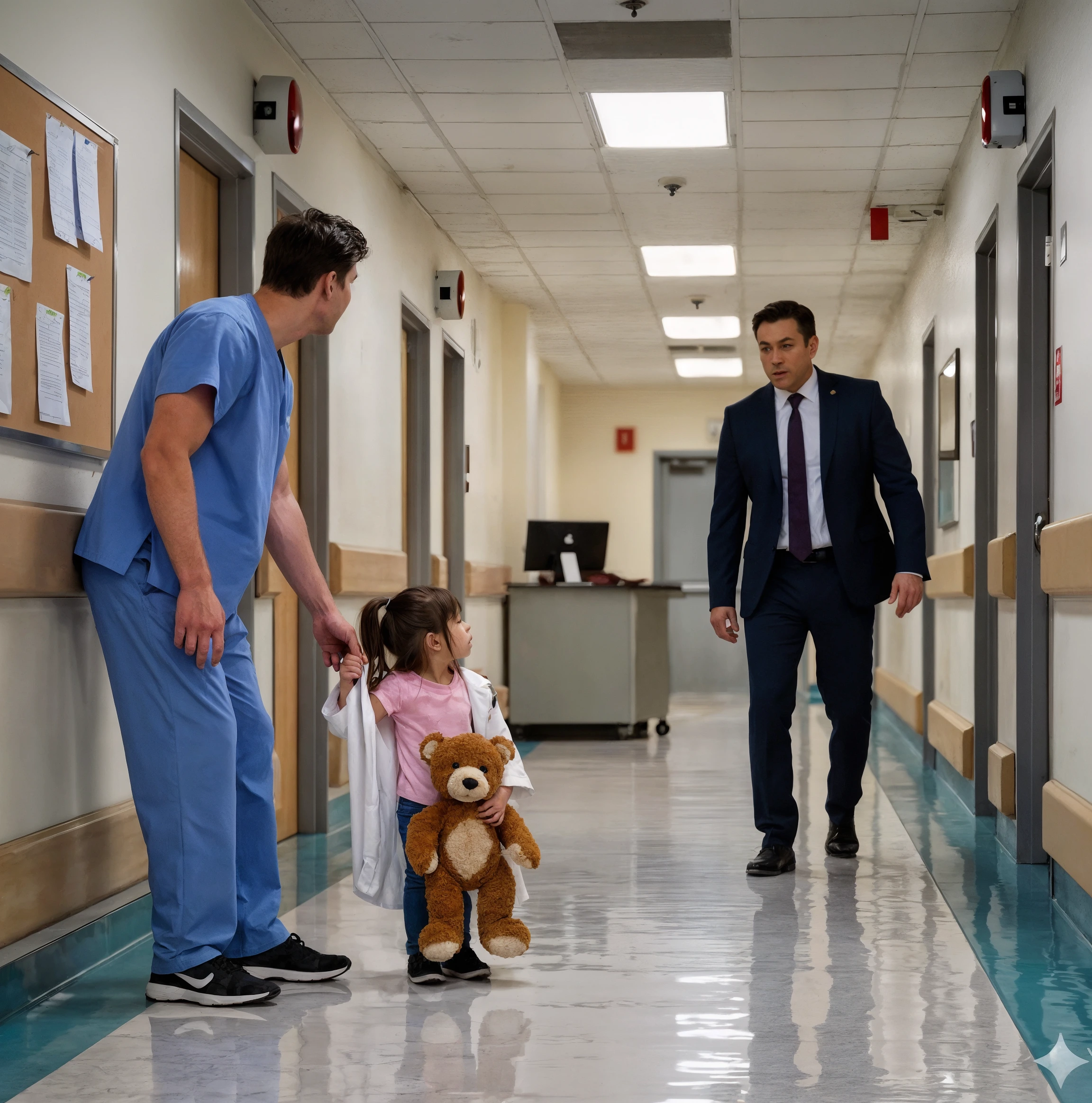 Poi, però, l’atmosfera dell’ospedale cambiò. I suoni abituali delle scarpe da ginnastica che strisciavano e delle barelle che scivolavano vennero trafitti da un grido così crudo da sembrare capace di lacerare la stoffa stessa del palazzo. Era il pianto di un bambino — non il pianto di un capriccio, ma quello di un’anima che si spezza per la paura.