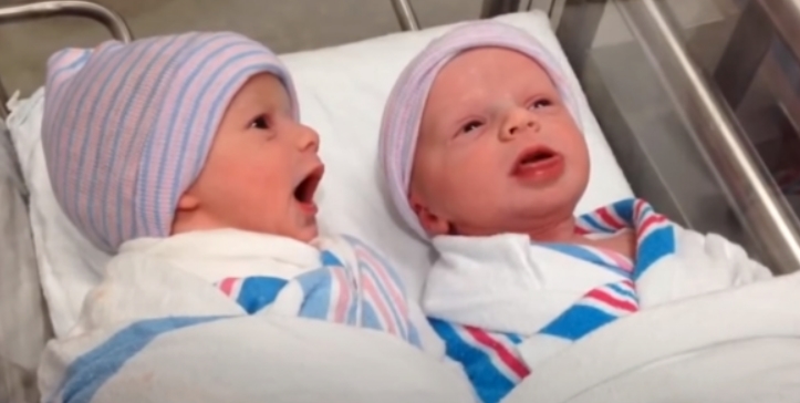 Сердечне відео новонароджених близнюків, які спілкуються один з одним через годину після народження.