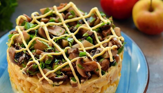 СЫТНЫЙ СЛОЕНЫЙ САЛАТ «ОХОТНИЧИЙ» — УКРАСИТ ЛЮБОЙ ПРАЗДНИЧНЫЙ СТОЛ