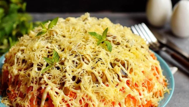Ингредиенты: Копченая колбаса — 200 г Картофель — 3 шт Яйцо куриное — 3 шт Маринованные огурцы — 2-3 шт Морковь — 1 шт Шампиньоны маринованные — 100-150 г Твердый сыр — 50-70 г Майонез — 150 г Соль — щепотка Черный молотый перец — по вкусу Приготовление: Выкладываем салат слоями: — вареный картофель, тертый … Read more